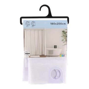 Zuhanyfüggöny poliészter 180x200cm fehér integrált karikával jellemzők