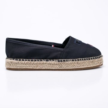 Espadrilles kollekció Tommy Hilfiger. Textilanyagból készült modell. - Kerek, lágy orr. - Csúszásmentes gumitalp. - Puha sarok. - Textil belső. - Betét hossza: 24 cm. - Megadott méret: 37. textil Összetétel: Szár: textil Belseje: szintetikus anyag, textil Talp: szintetikus anyag Termék azonosító: 4921-OBD208 Gyártó kód: FW0FW02412.403