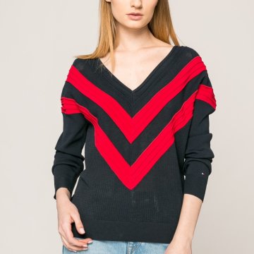 Pulóver kollekció Tommy Hilfiger. Finoman kötött anyagból készült v-nyakú modell. - Egyszerű stílus. - Hegyes nyakkivágás. - Húzott aljú ujjak. - Anyag: kötöttáru. - Ujj hossza a nyak vonalától mérve: 70 cm. - Hosszúság: 62 cm. - Hónalj alatti szélesség: 50 cm. - Megadott méret: S. alap modell rövid vékony Összetétel: 37% poliamid, 63% viszkóz Termék azonosító: 4921-SWD00L Gyártó kód: WW0WW20780