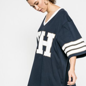 Top kollekció Tommy Hilfiger. Nyomtatott dzsörzéből készült modell. - Laza fazon. - Hegyes nyakkivágás. - Feliratos modell. - Vékony, rugalmas anyagból. - Hosszúság: 82 cm. - Hónalj alatti szélesség: 55 cm. - Megadott méret: S. alkalmi print modell Összetétel: 100% pamut Termék azonosító: 4931-TSD00T Gyártó kód: WW0WW18553