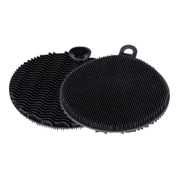 Higiénikus szilikon mosogatószivacs fekete színben, 2 db-os szett. Finom buborékos felület enyhe szennyeződésekhez Kemény oldal makacs szennyeződésekhez. Mosogatógépben mosható, tapadókoronggal ellátva.Méretek (Sz/M x Ma): mindegyik Ø 12 x 1,2 cm.