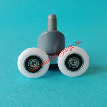 Csuklós rugóval vagy másnéven nyomógombbal állítható dupla kerekes alsó zuhanykabin görgő, mely alkalmazható íves és szögletes zuhanykabinokhoz egyaránt. A zuhanykabin forgalmazók által nagyon gyakran használt görgőtípus, melyből kiemelendő a 23 és a 25mm-es változat. A két kerék nagy terhelhetőséget és egyben hosszabb élettartamot biztosíthat a használó számára.