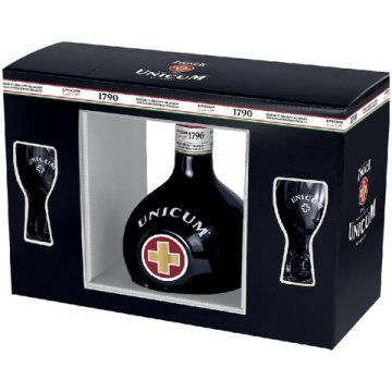 Zwack Unicum vagy Unicum Szilva keserűlikőr 2 db pohárral díszdobozban jellemzők